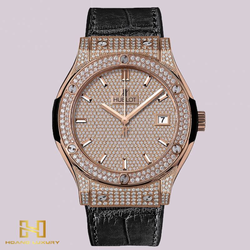 Đến từ nhà sản xuất đổng hồ nổi tiếng bậc nhất Châu Âu – Thụy Sĩ, cùng với thiết kế độc đáo từ dây cao su vân cá sấu đến mặt đồng hồ đúc vàng đính full kim cương, chiếc đồng hồ Hublot Classic Fusion King Gold Full Pavé đang làm chao đảo giới chiêu mộ.