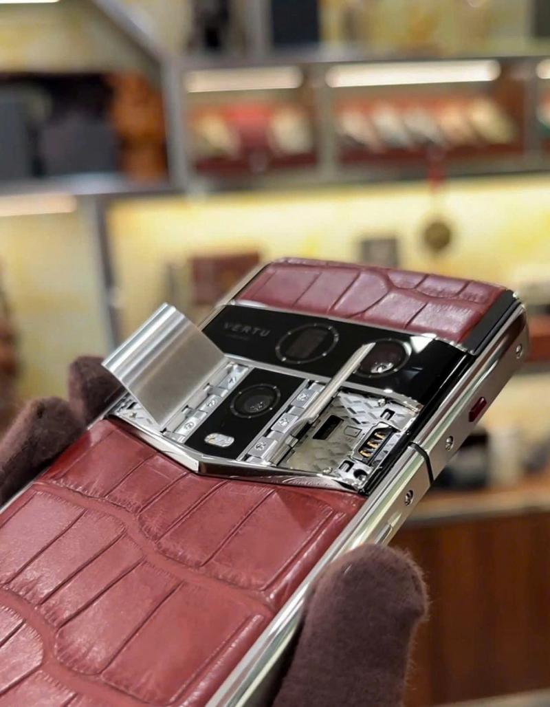 Ngay khi cầm trên tay Vertu Agent Q Silver Advanced Set Amber Brown Alli 1TB, người dùng sẽ cảm nhận được sự đẳng cấp đến từ lớp da cá sấu liền mạch bao trọn thân máy, mang đến cảm giác mềm mại nhưng vẫn đầy chắc chắn. Bộ khung Falcon-Wing chế tác từ thép không gỉ kết hợp cùng bản lề chuẩn Thụy Sĩ giúp từng thao tác mở – đóng trở nên mượt mà, bền bỉ theo thời gian.